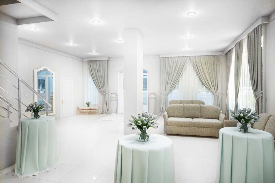 Интерьер банкетного зала "Губернский" способен поразить самым современным и качественным звуковым, световым и климатическим оборудованием, огромным пространством и воздушными потолками, вы можете провести различные значимые для вас мероприятия: