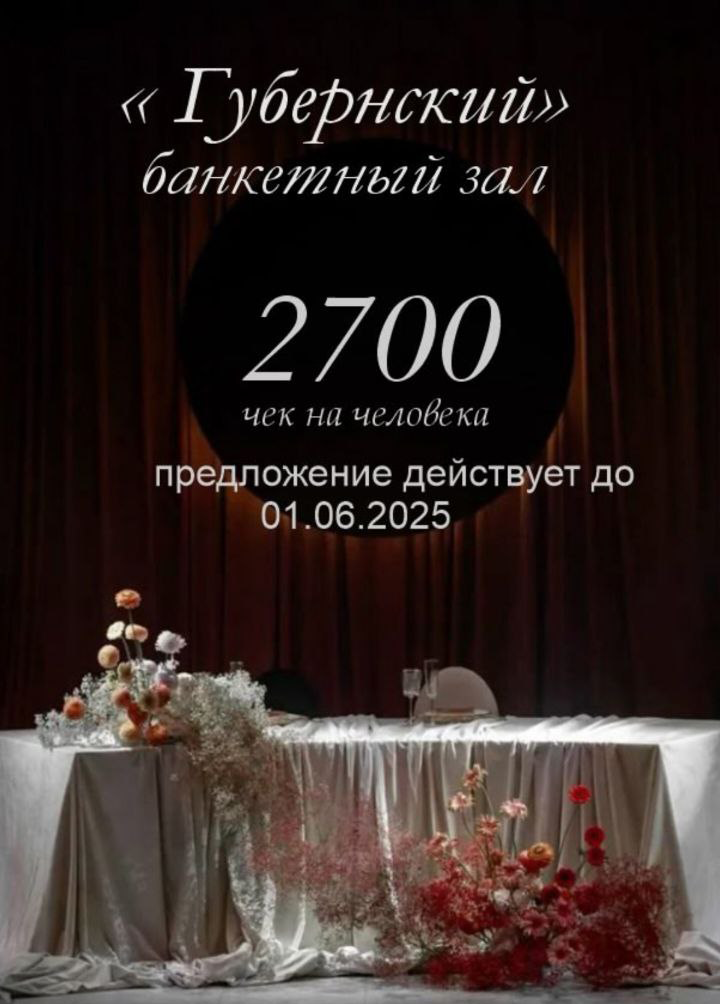 Банкетный зал «Губернский», оставаясь верным традициям русского гостеприимства, продвигает высокую идею гастрономии и сервиса. Для нас каждое торжество - уникально, поэтому каждое банкетное меню создается индивидуально, с учетом пожеланий и предпочтений гостя!